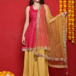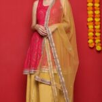 Step into celebrations with this stunning Pink & Mustard Festive Suit Set, designed to give you a perfect traditional yet modern Indian look.