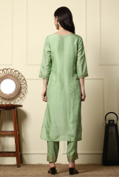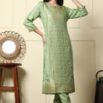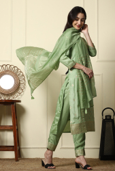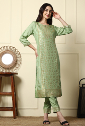 Add a touch of luxury to your festive collection with this stylish Green Suit Set. Designed with a sophisticated straight-fit kurti adorned with golden foil print, it is paired with matching pants and a soft flowing dupatta. The subtle and classy shade makes it perfect for festive functions, office events, and celebrations.